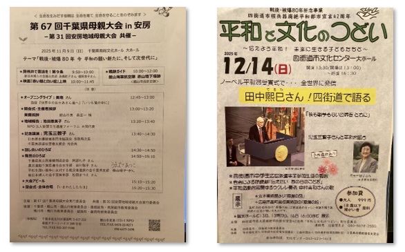 現在88歳の児玉三智子さんから、ノーベル平和賞は今年2025年に受賞される予定だったのが、核兵器が再び使われる危険性が出てきた世界情勢のために一年繰り上げて2024年に受賞したそうです。受賞してから日本全国から、世界から講演依頼が来ているとのこと。