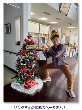 12月、振り返ると一年は早いものです。12月、今年は20℃を超える暖かい日があり、「私は、サンタさんの親戚のヘータさん!」のシーズン到来でもあります。