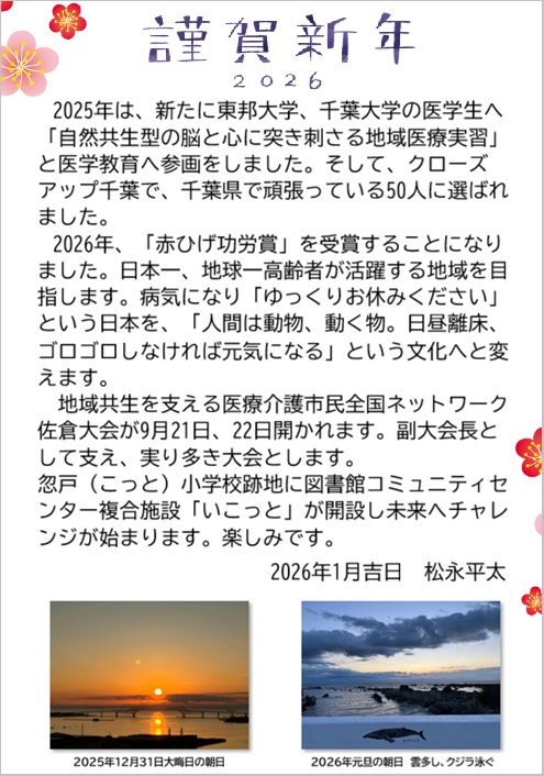 南房総に住んで良かった!と思える地域を目指し、町医者として頑張ろう。
